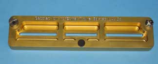 The design of the Gage Bock Clamp consists of a rigid block of metal that is machined to hold two gage blocks simultaneously. The two gage blocks used are usually three inches (3.0”, 76.2 mm) and four inches long (4.0”, 101.2 mm). Each gage block is held in position by two thumb screws. This Gage Block clamp is universal in that it will hold either standard rectangle or Square Gage Block. To add even more versatility and economy to this device, a pair of adjustable ball bar balls (our Part # ABB-PB-100) may be attached, one to the end of the Gage Block Clamp, and one to the end of the Adjustable Ball Bar on the opposite end. This will turn the Ball Bar Clamp into a fully functioning Ball Bar.